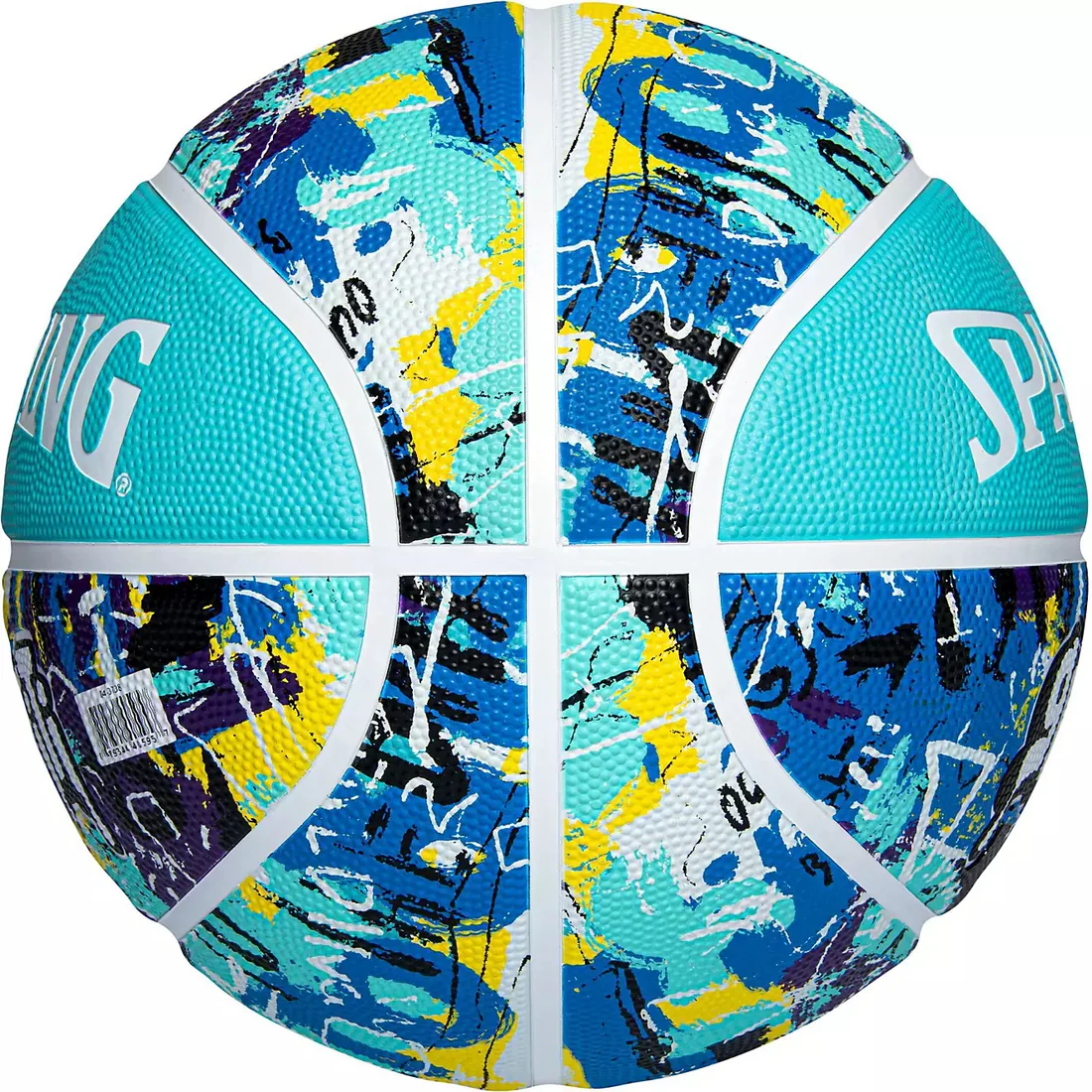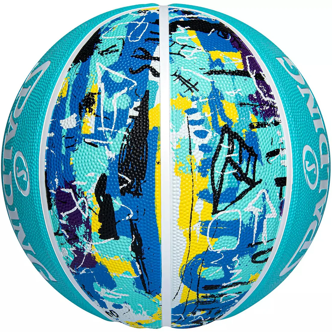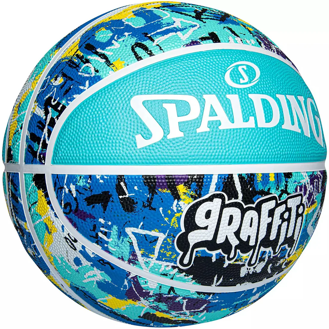 Pelota de Básquet Spalding yellow blue Graffiti Rubber (Talla 7) Cobertura exterior de alto rendimiento. Caucho antideslizante, para un buen agarre. Cuenta con excelentes características de durabilidad y juego para que puedas tener entrenamientos de alto rendimiento.