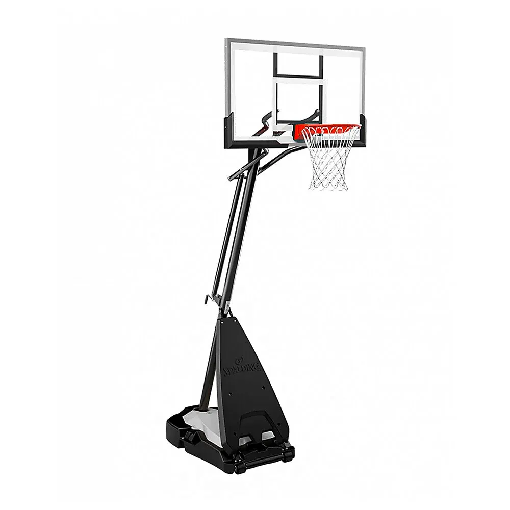 Tablero portátil de 54″ regulable que combina rendimiento profesional y diseño resistente. Su tablero de vidrio templado de 54” (137 cm) con marco de acero ofrece una experiencia de rebote auténtica, ideal para entrenamientos avanzados y partidos recreativos. El aro Arena Slam™ separable absorbe el impacto de las volcadas, mientras que el sistema de elevación infinita con gato de tornillo permite ajustar la altura de 2.28 m a 3.05 m fácilmente. Su poste redondo de acero de 4” y base de 250 lb brindan máxima estabilidad y portabilidad gracias a sus ruedas delanteras.